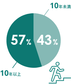 | 再雇用制度 | 社員の定年は60歳ですが、当社では継続勤務できる再雇用制度があり、経験とスキルを活かして最長65歳まで働くことができます。 |