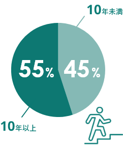 | 再雇用制度 | 社員の定年は60歳ですが、当社では継続勤務できる再雇用制度があり、経験とスキルを活かして最長65歳まで働くことができます。 |